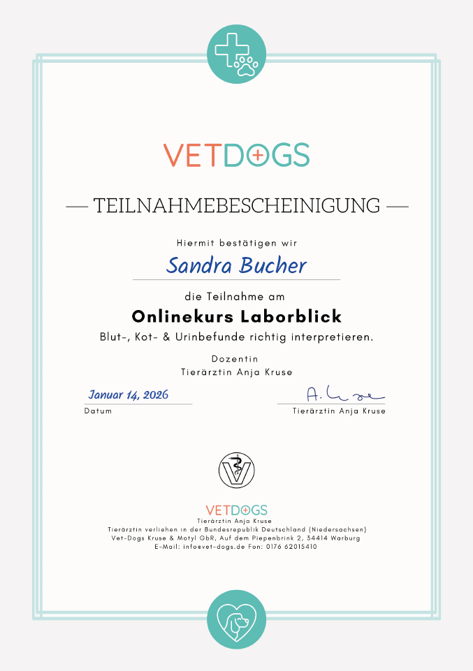 Ich bin Sandra Bucher – veterinär geprüfte Ernährungsberaterin für Hunde und habe meine Leidenschaft für gesunde Hundeernährung zu meinem Beruf gemacht. Zuvor habe ich Marketing und Kommunikation studiert und in diesem Bereich gearbeitet – heute nutze ich dieses Wissen, um komplexe Themen klar und verständlich aufzubereiten.